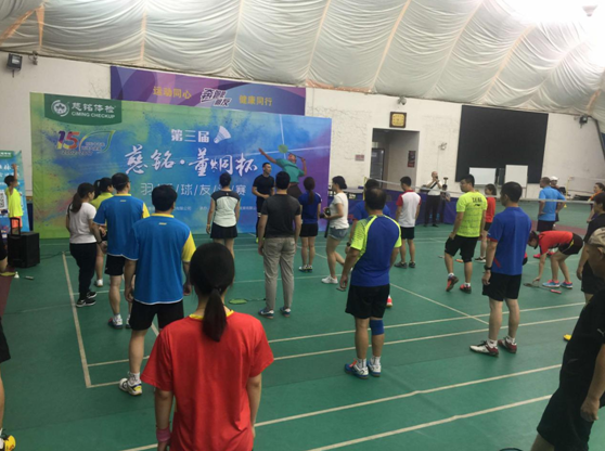 2017年6月25日,為期四天的第三屆慈銘●董炯杯羽毛球友誼賽在北京市朝陽體育中心完美落幕,此次活動(dòng)吸引了民政部、燕京啤酒集團(tuán)、北辰集團(tuán)、中海油集團(tuán)集體等20余家單位,百余名選手參賽。世界羽毛球冠軍董炯、劉小龍和原央視著名主持人楊柳到場(chǎng)為羽毛球賽事助力加油。