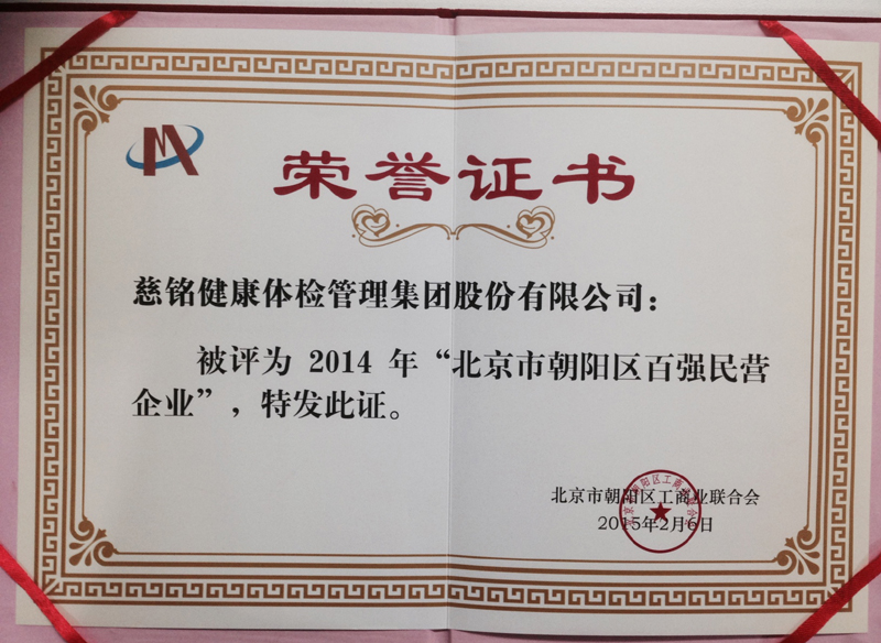 慈銘集團榮獲“朝陽區百強民營企業”頭榜并獲“光彩之... 2015.02.10