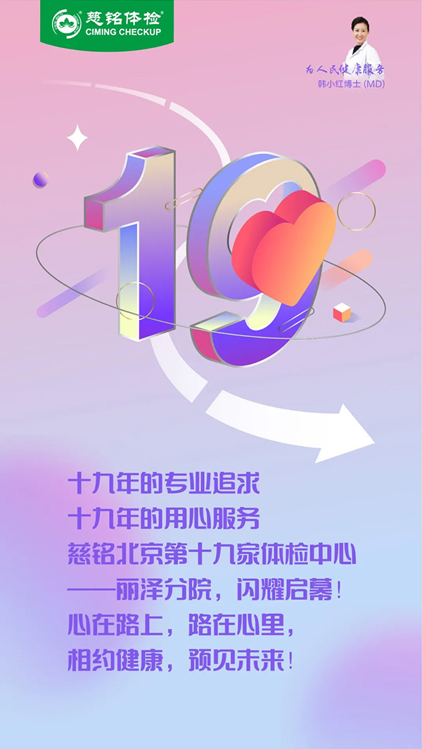 堅守品質,初心依舊  北京慈銘體檢麗澤分院已閃耀啟幕,滿足麗澤商圈及首都西南地區廣大客戶多元化、多層次的健康需求。作為慈銘【深檢分院】,麗澤分院將為商區周邊商務精英、白領等人群提供全面的深度體檢、私人醫生、定制...