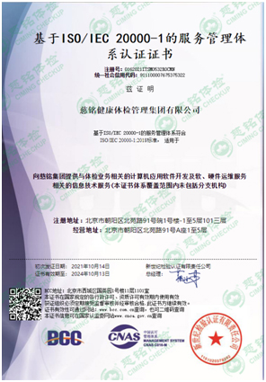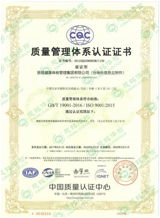 慈銘體檢在行業內建立健康體檢質量管理規范、分院??茦藴鼠w系,成立醫療質量管理委員會,深入開展質量管理、制度建設、人才培養、科研合作和醫療創新等,嚴格把控醫療質量,堅守品牌生命線。